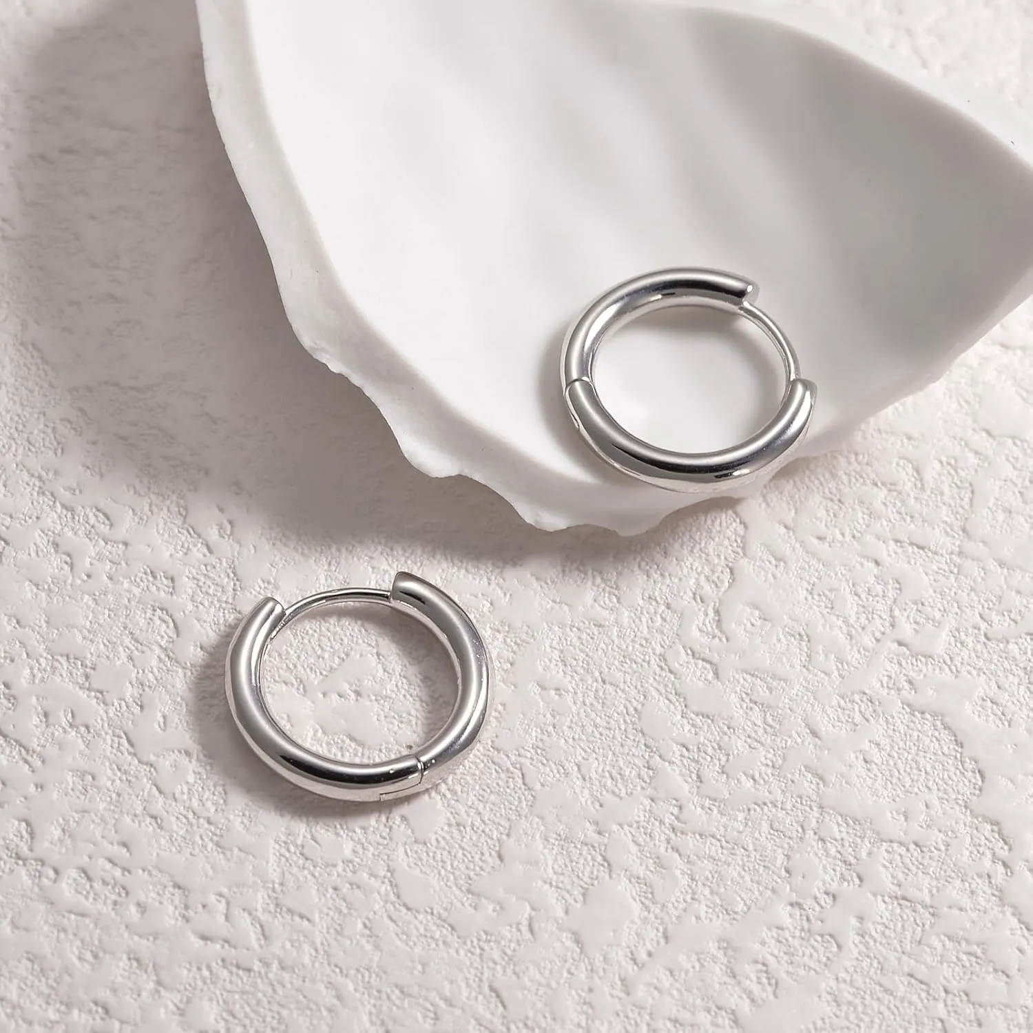 - Hypoallergenic MaterialThese 3 pairs small silver hoop earrings set is made of 14K white gold-plated on the surface with 925 sterling silver post, ensuring they are lead-free, nickel-free, and hypoallergenic. Perfect for sensitive ears, offering both comfort and style all day long.