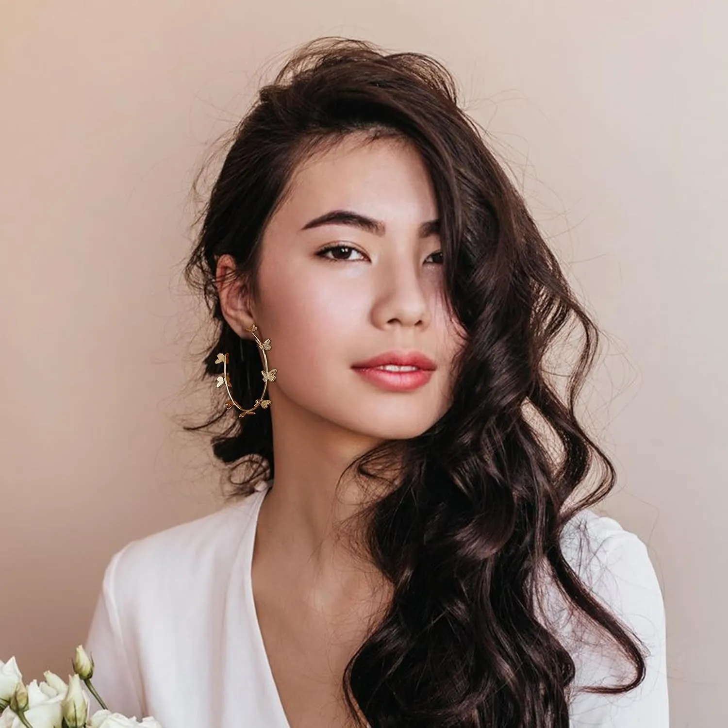 - BUTTERFLY HOOP EARRING:Butterfly earrings are unique and beautiful, insect butterflies are decorated on large hoop earrings that seem to dance in your hair and look very charming