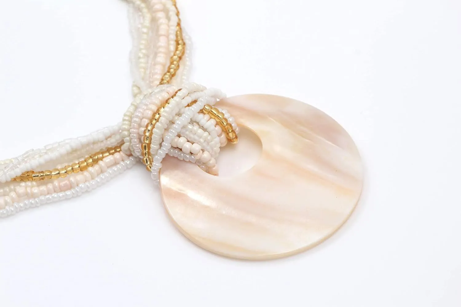 Coiris Multi Strand Statement Colorful Beaded Necklace with Big Circle Shell Pendant for Women