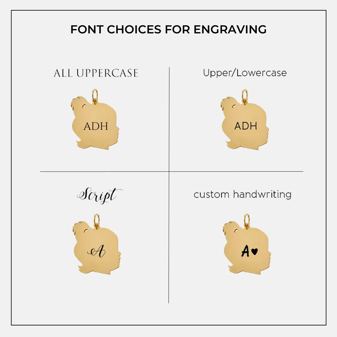 These silhouette charms are our smallest size. Due to their size, some of the facial features and hair details might be less noticeable and not as clear compared to the actual proof you will receive. If this is an issue for you, please opt for a or size.