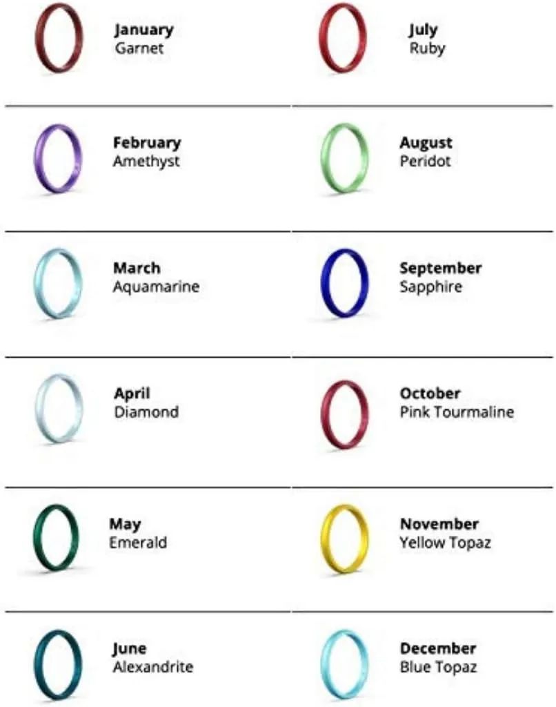 - BIRTHSTONE THIN SILICONE RING: Birthstones accompany a birth month, each having a unique meaning and significance. Our new Birthstone Collection is handcrafted in-house and offers you a variety unlike any other.