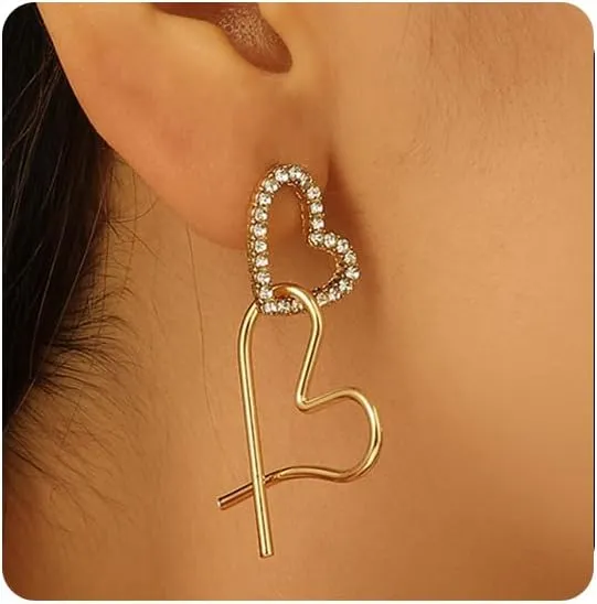 - Love heart dangle earrings: These stunning heart drop earrings feature a double heart shape design, offering a modern interpretation of the classic heart earrings aesthetic. The combination of pearls and gold-plated hoops adds an elegant twist to the design, balancing timeless beauty with a contemporary touch.