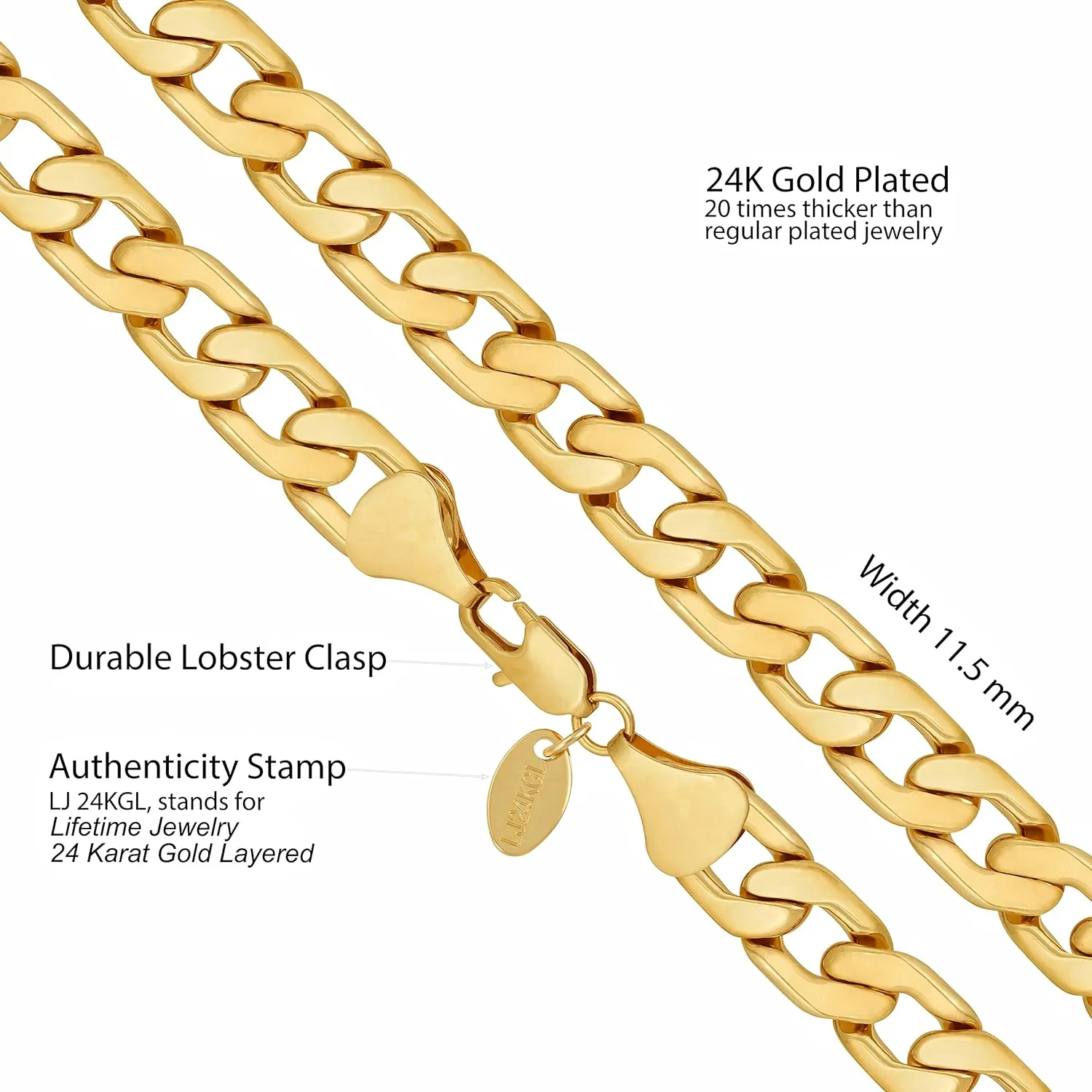 - This smooth 11.5mm ( ~ 7/16 ) Flat Miami Curb Link Necklace is made to last with up to 20X more 24 karat real gold plating than standard electroplated fashion jewelry
