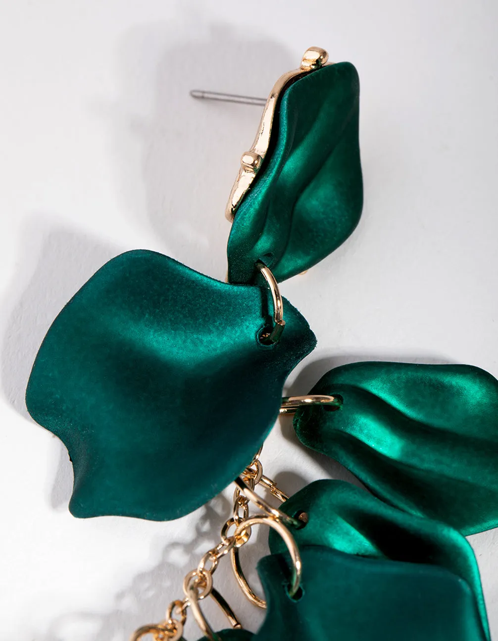 Style a charming ensemble with these stunning earrings. On a gold-toned setting, these earrings boast beautiful matte green petals that are sure to turn heads. Pair with your favourite evening outfit for a look of sheer glamour.