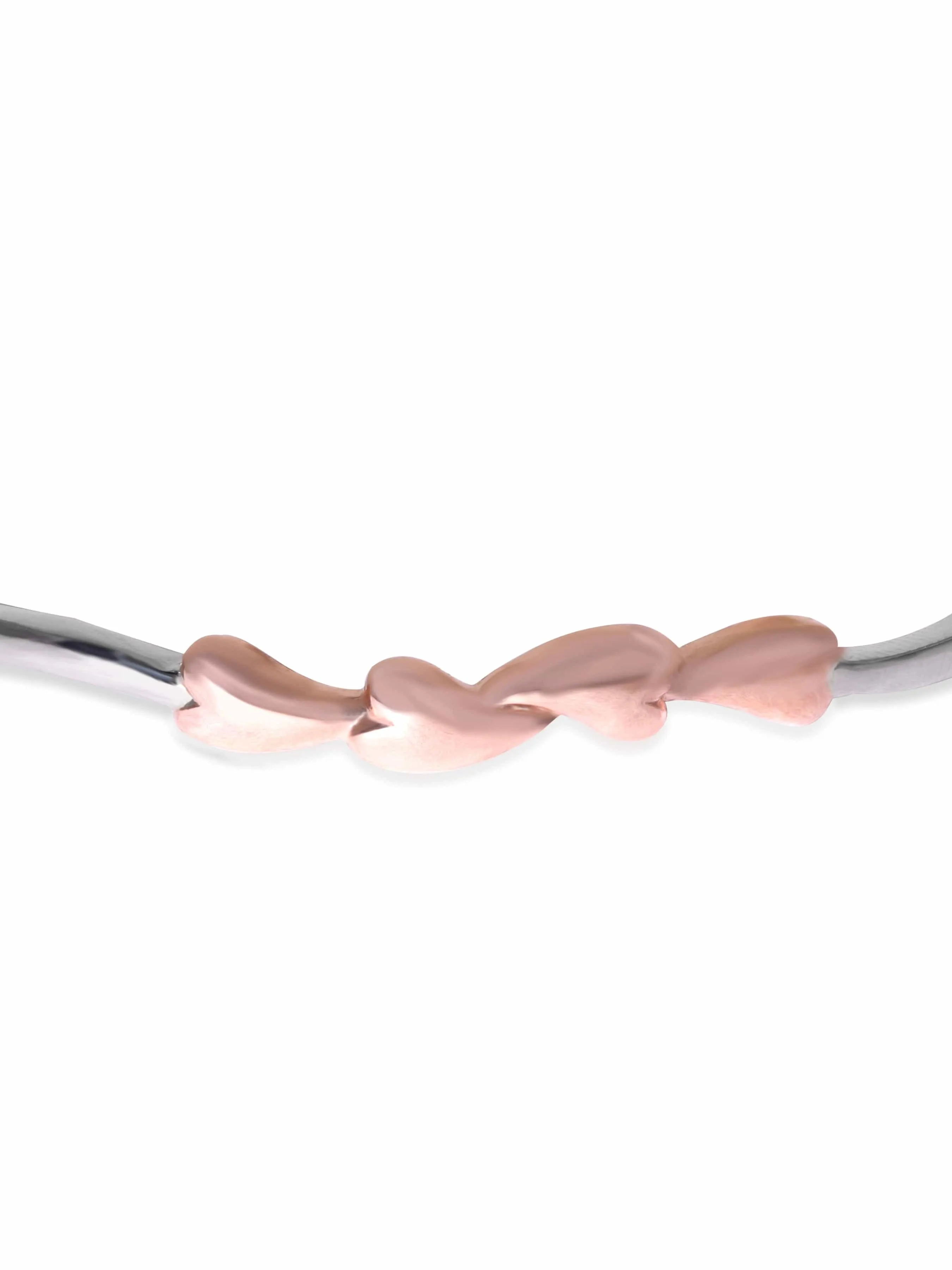 Made from high-quality 925 sterling silver, the bracelet is plated with rhodium for enhanced durability and a sleek silver-white finish. It features delicate rose gold heart detailing, adding a touch of romance and sophistication. The bracelet is designed to be adjustable, ensuring a comfortable fit for various wrist sizes. Perfect for any occasion, this bracelet combines the timeless beauty of sterling silver with the feminine allure of rose gold, making it a delightful addition to your jewelry collection.