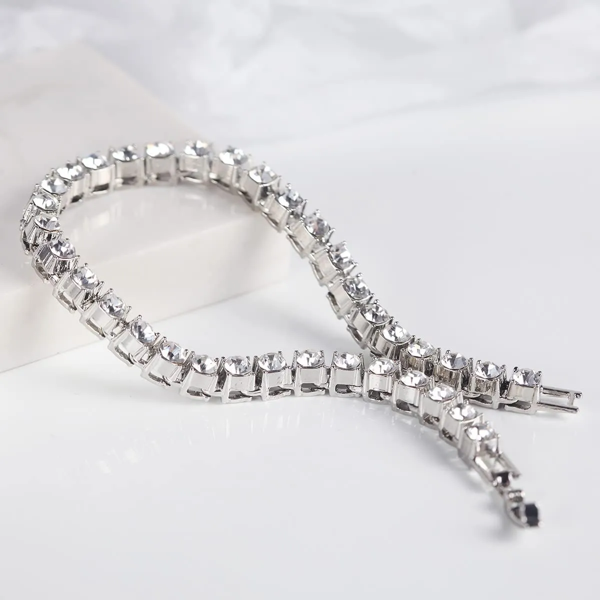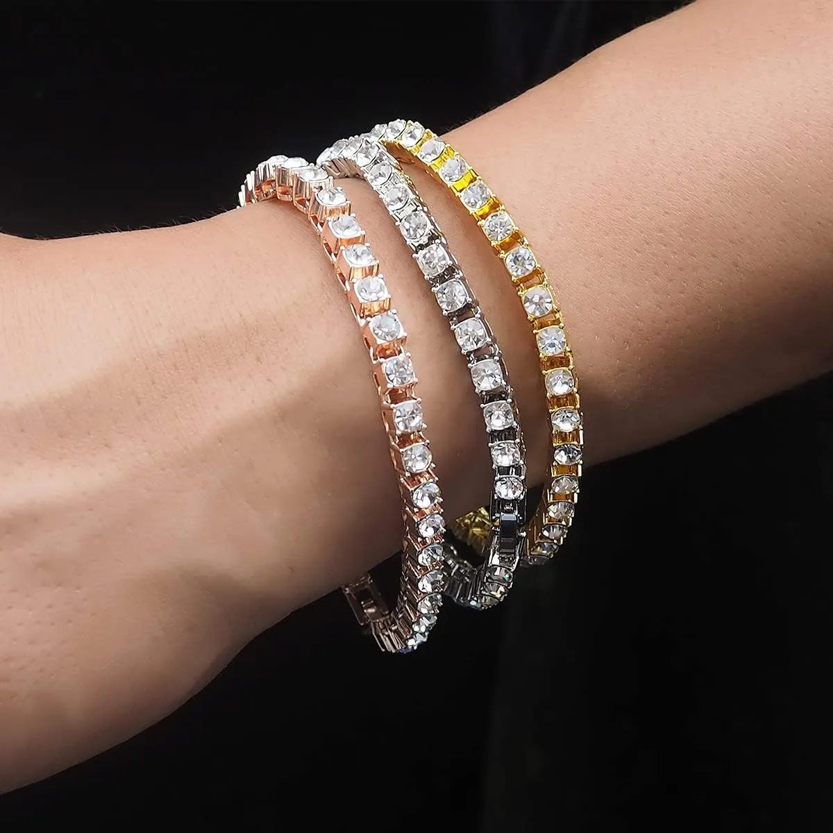 - Material - Tennis bracelet featuring round 5mm AAA cubic zirconia stones in four-prong basket settings. Iced out diamond tennis chain designs which made with incredible details and craftsmanship.