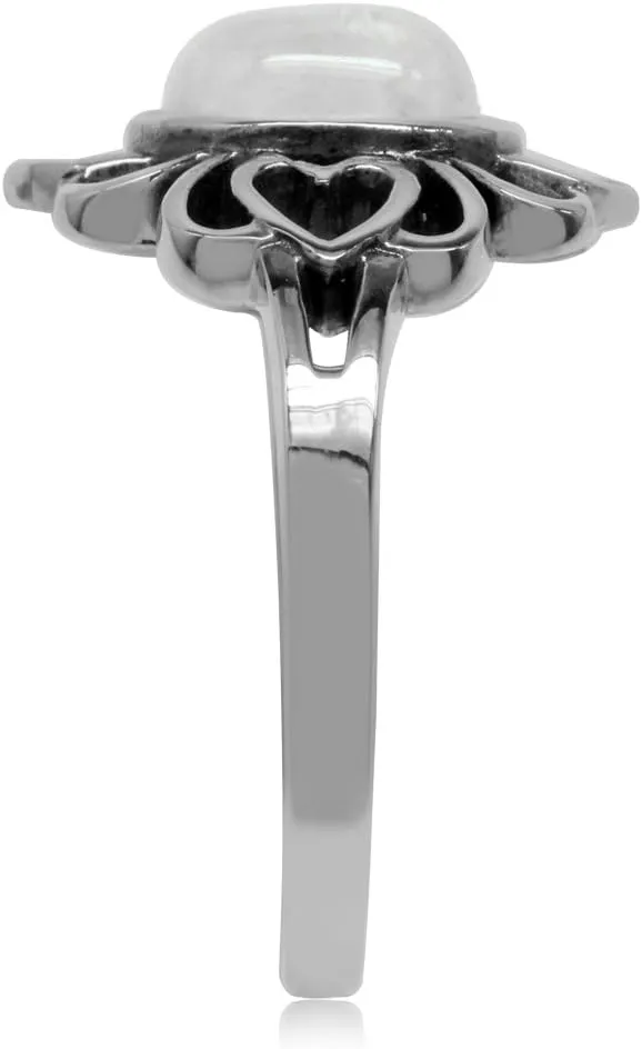 Silvershake Natural Moonstone 925 Sterling Silver Filigree Flower Ring