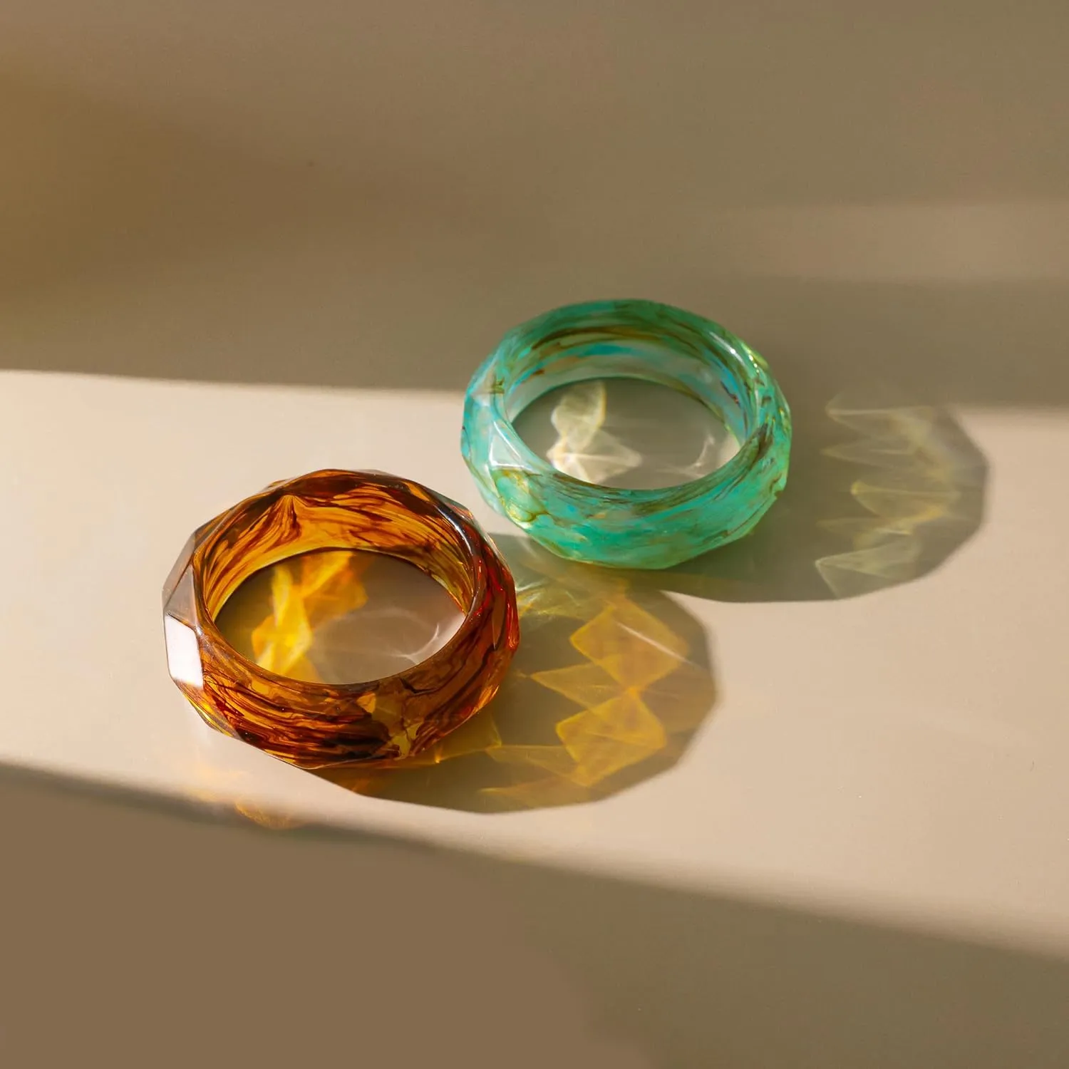 - Measurements: Each resin bangle measures 7.85 in. inner circumference, with a 2.5 in. diameter and 1 in. width; Fits wrists from 7.5 in. to 8.25 in. circumference; perfect for small to medium wrists
